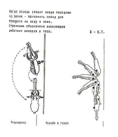 действующим дальше назад от подпруги. Тогда лошадь выходит из поворота в