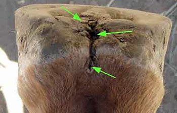 То же копыто, вид с подошвы, где мы снова можем видеть расслаивающуюся