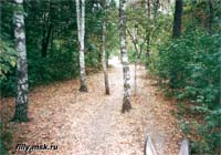 вход в парк, слева от пруда. Дорога идет вдоль Бугра (насыпи над линией